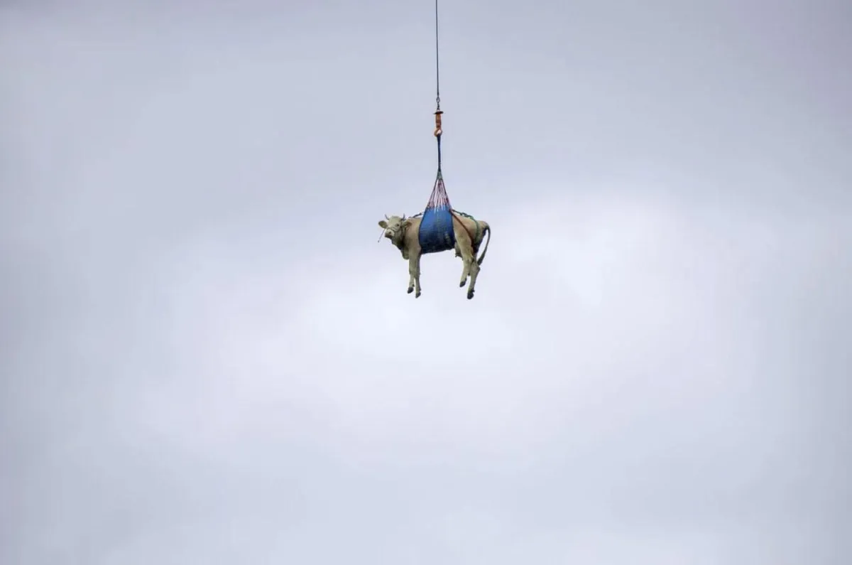 A Loni-ként emlegetett tehén viszont különleges bánásmódban részesült, ugyanis megsérült, így nem tudott lesétálni a hegyről. Így egy helikopter ment érte.