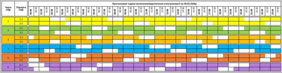 Kárpátalján a Zakarpattyaoblenerho megyei áramszolgáltató közzétette a 2026. február 9-ére érvényes, óránkénti áramkimaradások ütemtervét – írta meg a Kárpátinfó.net.