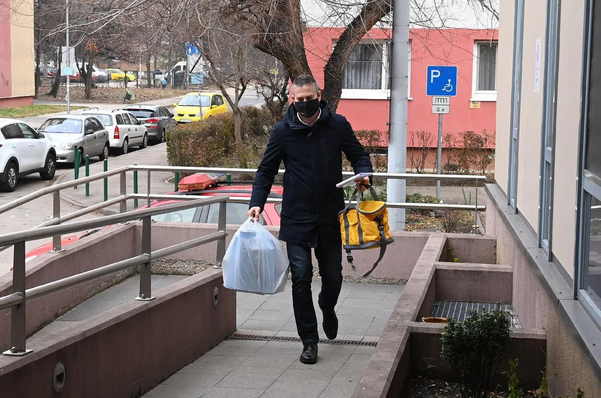 Fotó:Sára Botond, a fővárosi kormányhivatalt vezető kormánymegbízott érkezik a német-amerikai fejlesztésű Pfizer-BioNTech koronavírus elleni oltóanyag, a Comirnaty-vakcina gyerekek oltására alkalmas változatát tartalmazó ampullákkal az újpalotai Zsókavár utcai rendelőbe 2021. december 15-én. Ezen a napon országosan megkezdődött az 5-11 év közötti gyermekek immunizálása, az érintett korosztályból első körben 69 ezren kaphatják meg a vakcinát. MTI/Máthé Zoltán