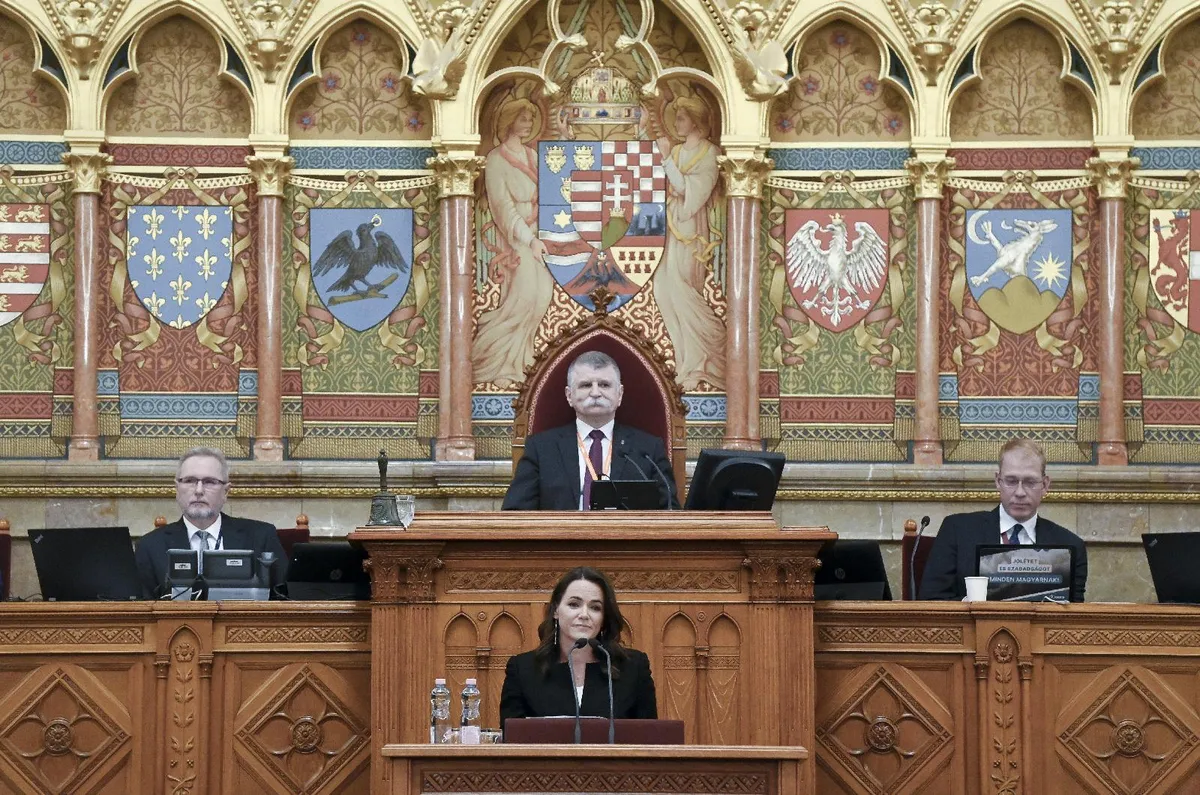 Novák Katalin kijelentette: az alaptörvényt betartja és betartatja, nem az alkotmányos rend lebontásán, hanem annak őreként annak fenntartásán fog munkálkodni.