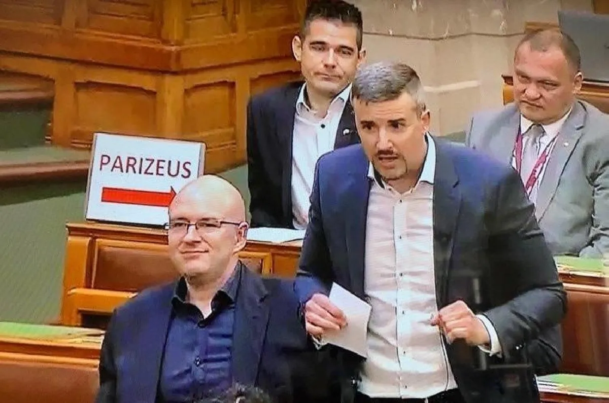 A parlament kedden plenáris ülést tartott, amelynek során ismét nyilvánvalóvá vált, hogy a feszültség a volt és mostani jobbikosok között egyre inkább fokozódik. Az ülésen Novák Előd Jakab Péter mögött ülve, a jobbikos felszólalásakor, kirakott egy táblát, amire azt írta, hogy „Parizeus”, a nyíl a felirat alatt pedig Jakabra mutatott.