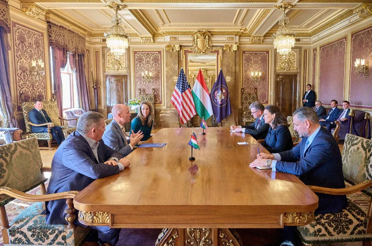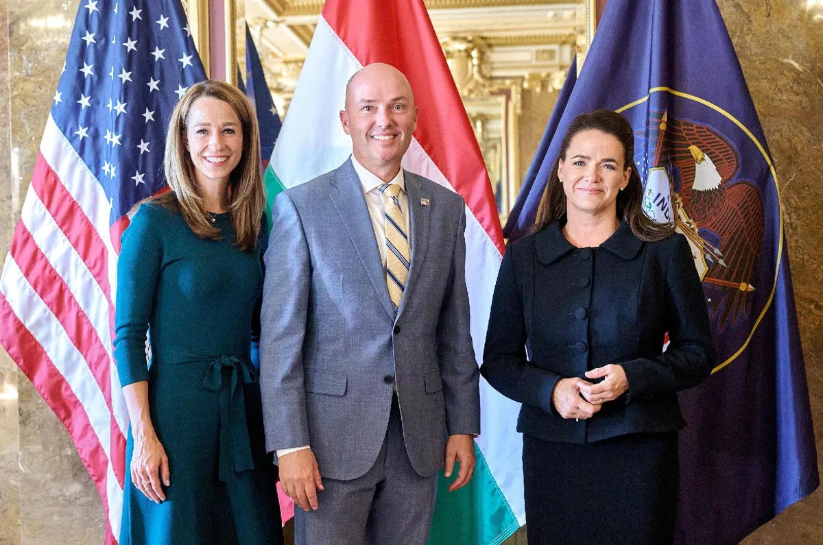 A köztársasági elnök kedden, amerikai hivatalos útjának utolsó programjaként tárgyalt Spencer Cox-szal, Utah állam republikánus kormányzójával, aki az állam törvényhozásának épületében fogadta őt.