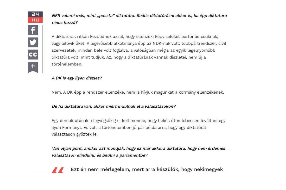 Interjút adott Dobrev Klára a 24.hu-nak, amelyben diktatúráról, Putyinról, a DK ambícióiról és még a diktatúráról is beszélt.