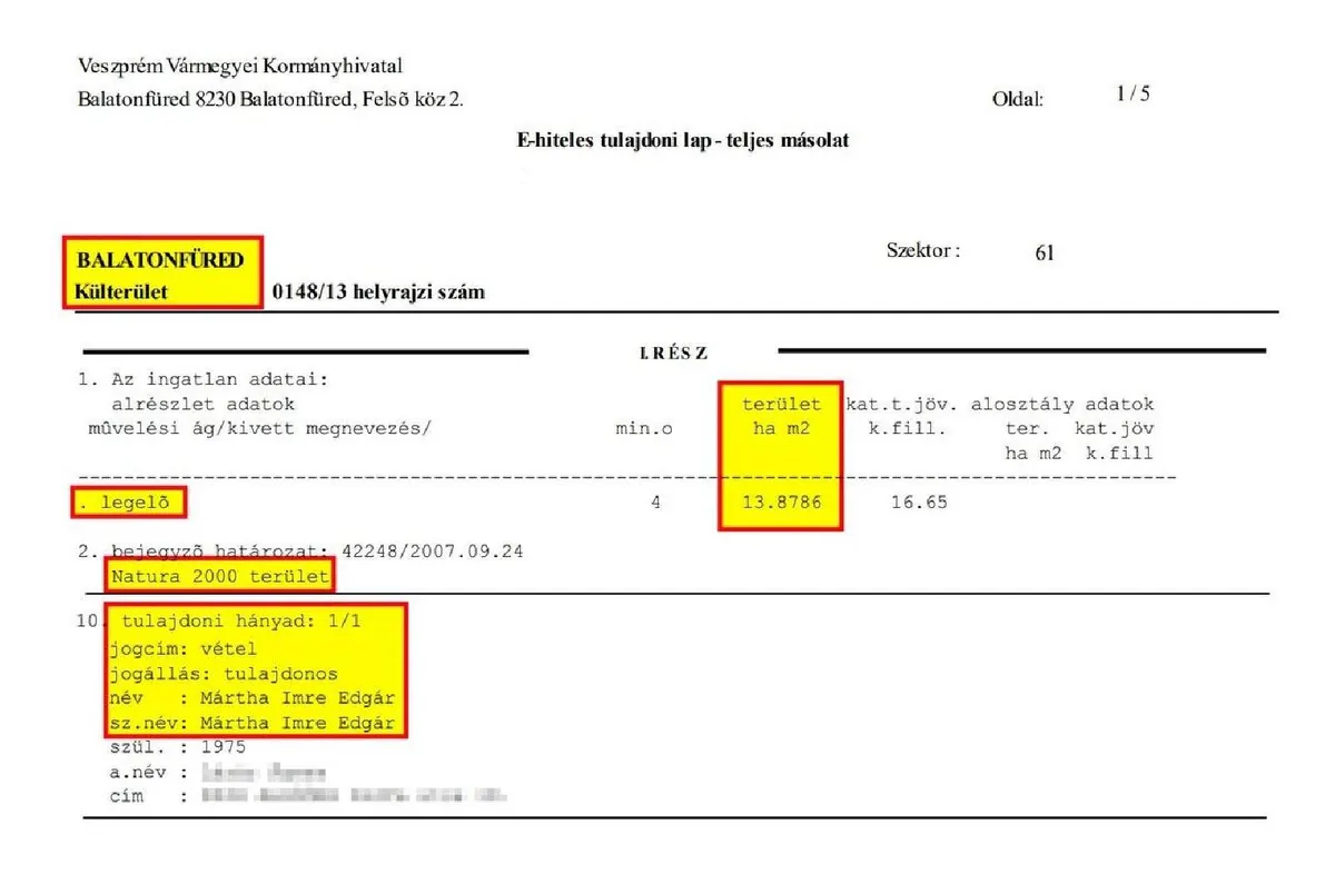 Mártha Imre gondosan titkolt birtoka közvetlenül szomszédos Balatonfüred legértékesebb belterületével, a fővárosi közművezér ezért látta meg benne a több milliárdot érő spekuláció lehetőségét.