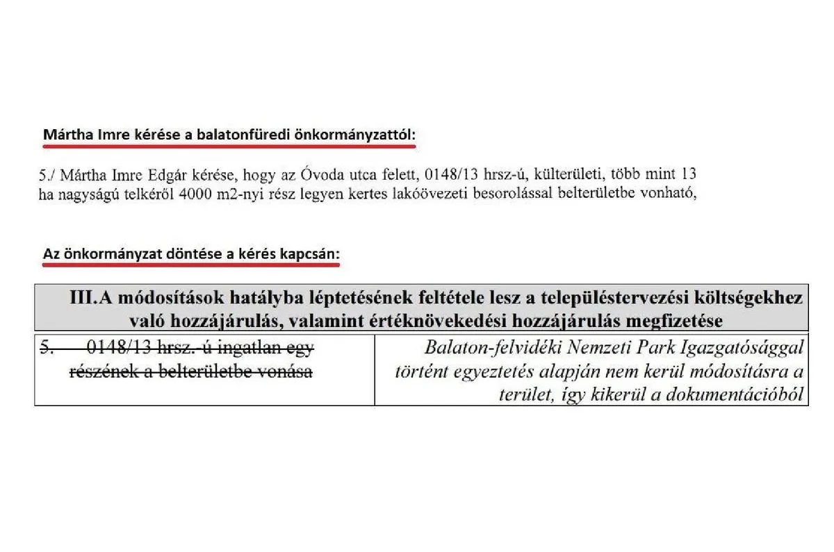 Az önkormányzat azonban felismerte a milliárdos spekulációs szándékot, és a Balaton-felvidéki Nemzeti Parkkal egyeztetve nem volt hajlandó megtárgyalni a „kérést”.