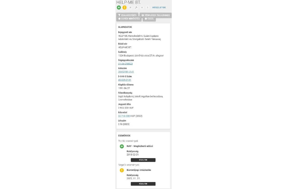 A Help-Me Bt.-ben, amely az elmúlt években összesen több, mint százmilliós bevételt realizált, kültagként tulajdonos a konkrét büntetőjogi intézkedés alá vont Vig Mór és úgyszintén kültagként tulajdonos Vig Dávid is.
