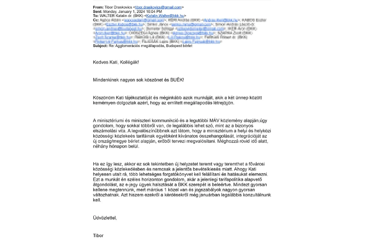Draskovics Tibor, a Gyurcsány-kormány volt pénzügyminisztere, jelenleg a BKK igazgatósági elnöke és Walter Katalin, a BKK vezérigazgatója közötti levelezésből kiderül: a 2020 óta változatlan évi 7,4 milliárd forintos összeg helyett a Lázár János vezette minisztérium utolsó ajánlata 8,6 milliárd forint volt.