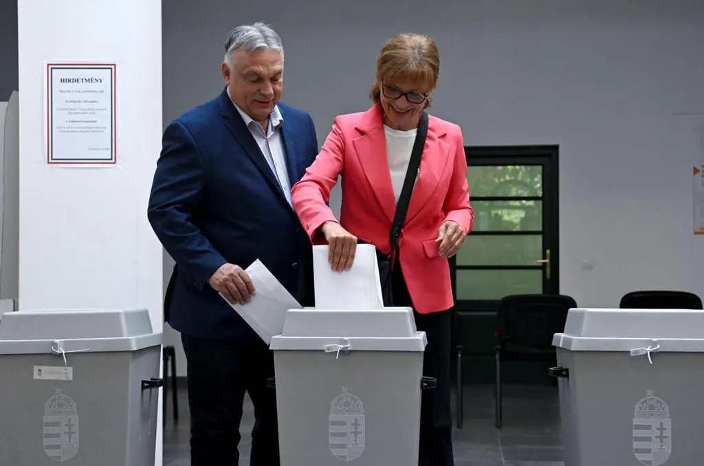 A miniszterelnök feleségével együtt érkezett a voksolás helyszínére.
