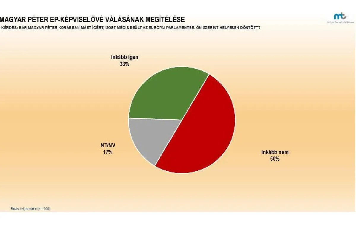 A diszkóbotrányon túl fontos fejlemény volt még, hogy Magyar Péter a választási kampányban tett többszörös ígérete ellenére felvette európai parlamenti mandátumát. Döntését azonban minden második magyar (50 százalék) ellenzi, és mindössze harmaduk ért egyet (33 százalék) vele, így ez jelentős hitelességi deficitet jelent számára.