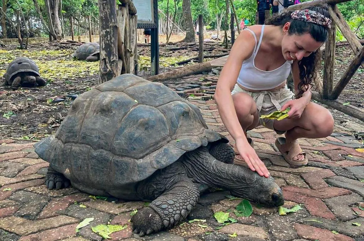 Ilike rajong az egzotikus állatokért, Zanzibár szigetén egy aldabrai óriásteknősökkel pózolt.