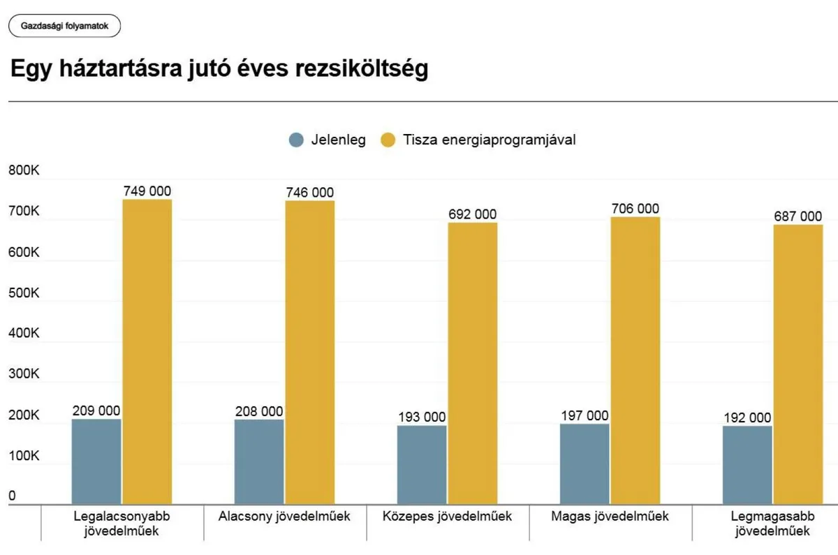 Szerintük a Tisza párt energiaprogramja drasztikusan megemelné az áram- és gázárakat, ami az egyes jövedelmi kategóriák közötti különbségeket is felnagyítaná.