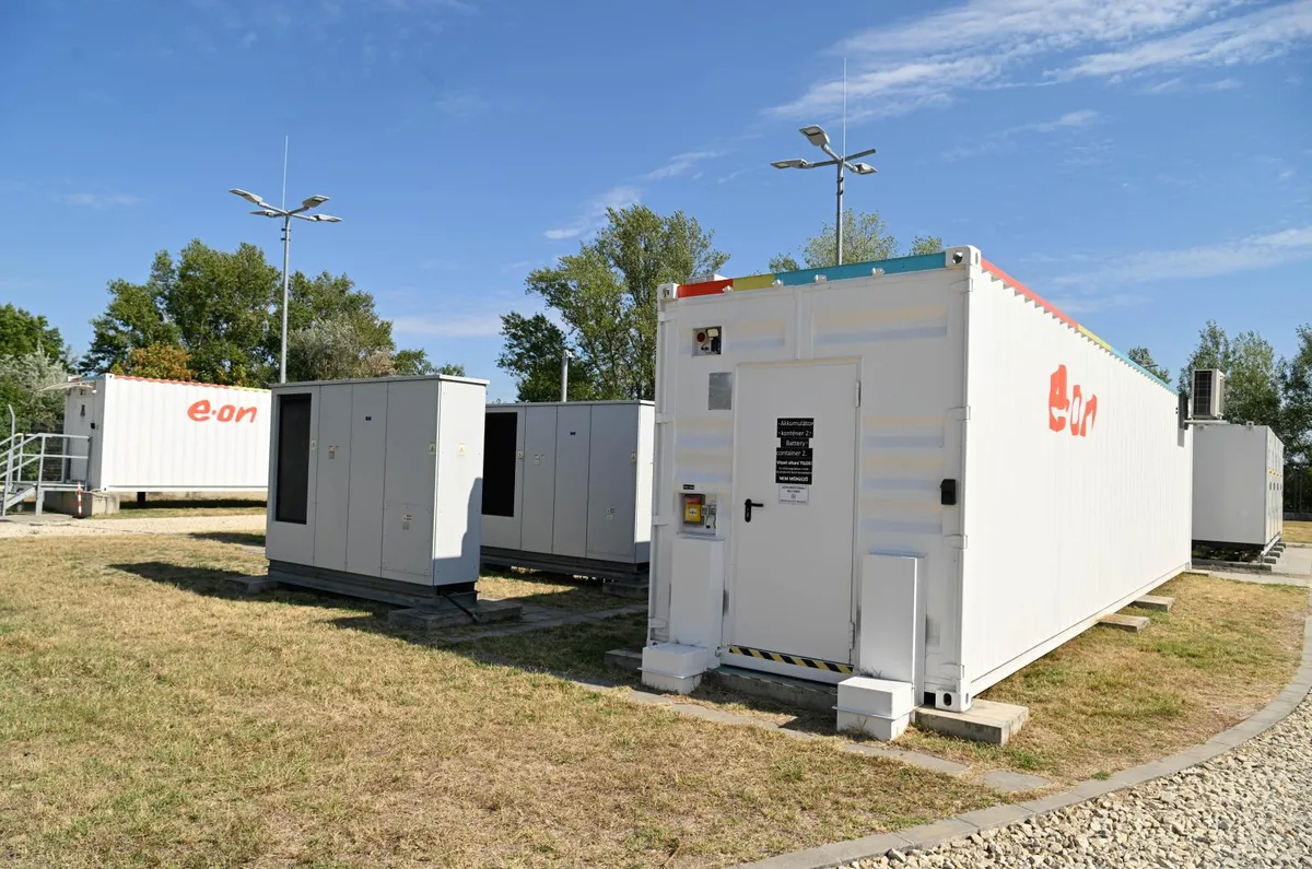 Fotóink illusztrációk: Az E.On Hungária Zrt. új energiatárolói az átadás napján a főváros XXIII. kerületében 2025. augusztus 28-án. A soroksári energiatároló 16 kültéri akkumulátor-szekrénye összesen 5,5 megawattóra kapacitással, 2,5 megawatt teljesítménnyel tárol áramot. MTI/Koszticsák Szilárd