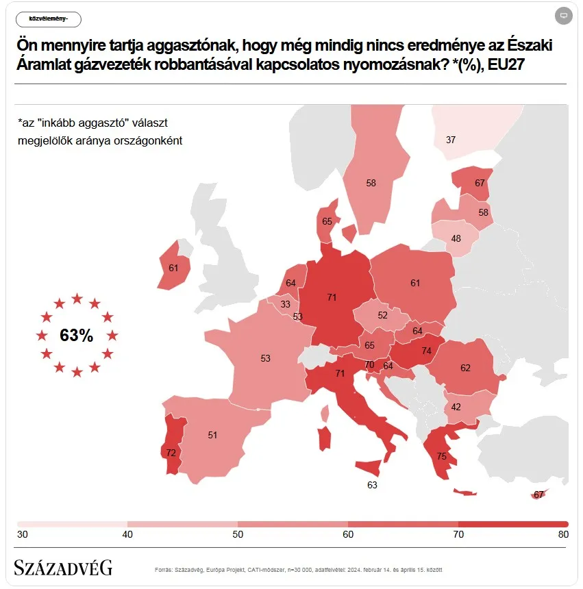 A vizsgálatok elhúzódásával ugyanakkor jelentős geopolitikai károk is együtt járnak, ugyanis a tétlenség azt jelzi: az EU kritikus infrastruktúrája elleni támadást büntetlenül meg lehet úszni és ez megágyazhat a későbbi szabotázsakcióknak is. Ennek fényében érthető, hogy az európai polgárok 63 százalékát aggasztja, hogy a nyomozásnak még mindig nincs eredménye – derül ki a Századvég Európa Projekt kutatásának 2024-es eredményeiből.