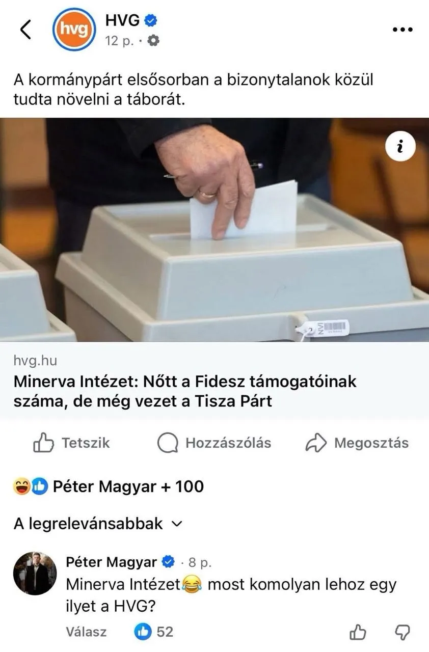 A felmérés eredményeit a HVG is ismertette, amelyre Magyar Péter, a Tisza Párt vezetője élesen reagált. Magyar kifogásolta, hogy a hozzá politikailag közel álló, baloldali lap egy független kutatóintézet olyan adatait közölte, amelyek a Fidesz erősödését hangsúlyozzák, és ezzel ellentétesek saját narratívájával.