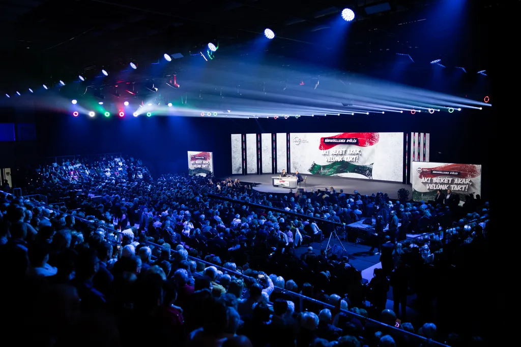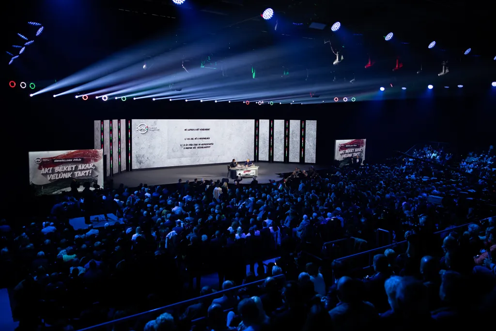 A teljesen megtelt szegedi Pick Arénában szombaton 11 óra után megkezdődött az idei utolsó háborúellenes gyűlés. Az eddigi legnagyobb találkozó résztvevőit a digitális polgári körök (DPK) nagykövetei, Szabó Zsófi és Rákay Philip köszöntötték. Az eseményen megjelent több kormánytag és Schmitt Pál volt köztársasági elnök is. Nem mentek el szó nélkül a Tisza-parti városban a politikai aktualitások mellett sem.