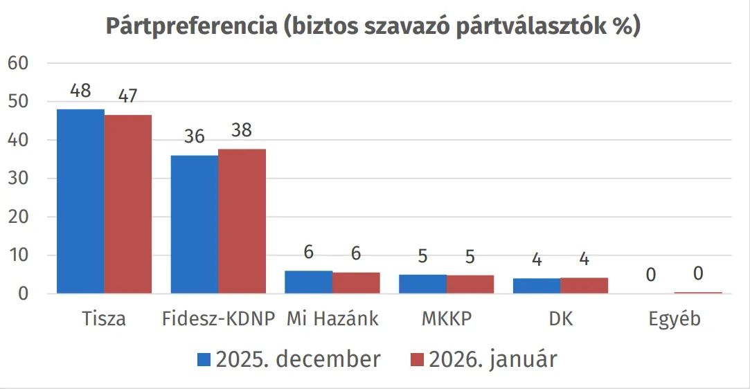 A kutatás 1000 fő telefonos megkérdezésével készült 2026. január 15-20. között. A kutatás nem, életkor, iskolai végzettség és településtípus szerint reprezentatív az ország felnőtt lakosságára. A hibahatár: +/- 3,5%.
