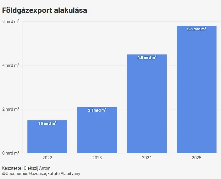 A magyar földgázexport, amely valójában tranzitjellegű, 2025-ben az importhoz hasonlóan jelentősen nőtt. A növekedés mértéke 28% volt az előző évhez képest.