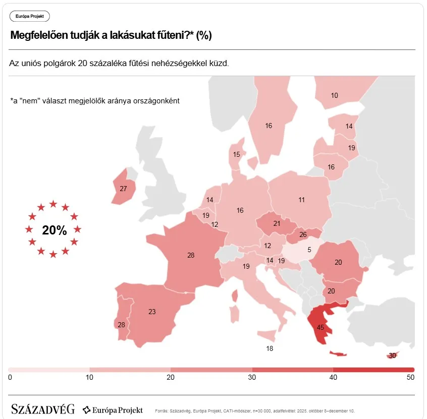 A Századvég Európa Projekt-kutatásának friss eredményei rámutatnak, hogy a megélhetési költségek gyors és drasztikus emelkedése széles társadalmi rétegek számára súlyos egzisztenciális nehézségeket okozott Európa-szerte. Az uniós lakosság 20 százaléka nem képes kellő mértékben felfűteni az otthonát, és 28 százalékukkal előfordult az elmúlt egy évben, hogy anyagi okok miatt nem tudták befizetni közüzemi díjaikat.