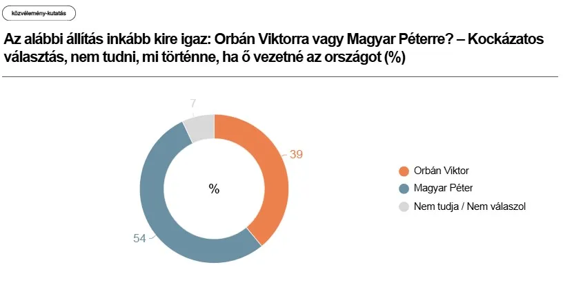 A Századvég arra is rákérdezett, hogy az az állítás, miszerint „kockázatos választás, nem tudni, mi történne, ha ő vezetné az országot” inkább kire igaz: Orbán Viktorra vagy Magyar Péterre?