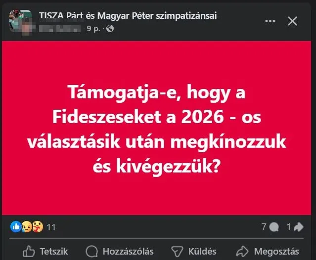 Támogatja-e, hogy a fideszeseket a 2026-os választások után megkínozzuk és kivégezzük?