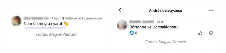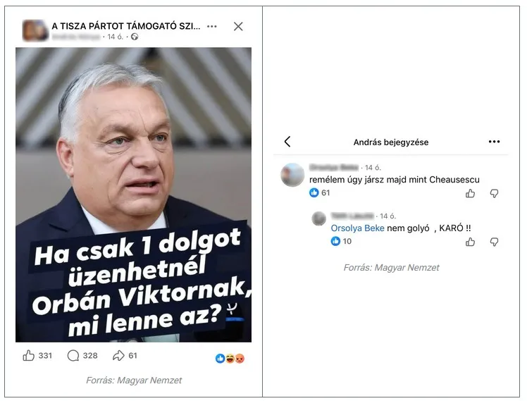 A felháborító kommentekre egy olyan, nyilvánvalóan a tiszások hergelését célzó bejegyzés alatt talált a lap, amelyben arra kérték a Tisza Párt szimpatizánsait, hogy írják le, mit üzennének Orbán Viktor miniszterelnöknek. Az egyik kommentelő mindössze annyit írt,