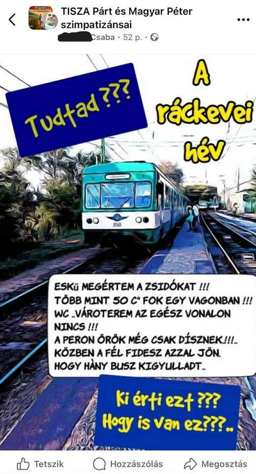 Ismeretes, a Tisza Párt támogatóit tömörítő csoportokban tapasztalható egyre erőszakosabb megnyilvánulások annak is köszönhetőek, hogy a bejegyzéseket ellenőrző adminisztrátorok sorozatosan figyelmen kívül hagyják a súlyosan dehumanizáló posztokat, és teret adnak a gyűlöletbeszédnek.