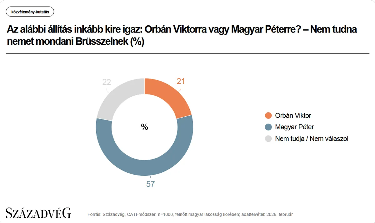 Az alábbi állítás inkább kire igaz, Orbán Viktorra vagy Magyar Péterre? – Nem tudna nemet mondani Brüsszelnek.