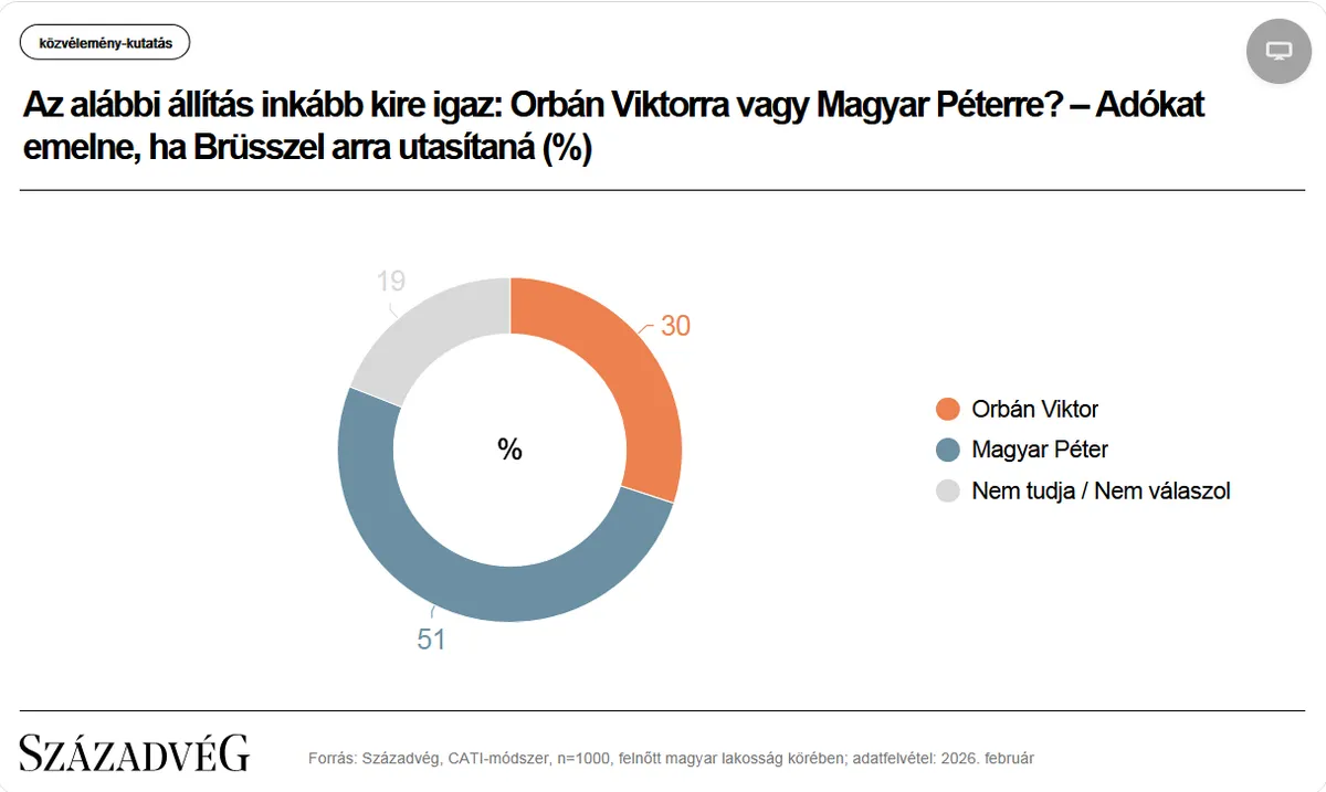 Az alábbi állítás kire igaz inkább, Orbán Viktorra vagy Magyar Péterre? – Adókat emelne, ha Brüsszel erre utasítaná.