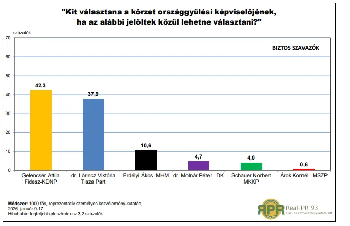 Mint írták, a Real-PR 93 2026. január közepén 1000 fős, személyes kérdezésen alapuló felmérést készített Somogy vármegye 1-es választókerületében, amelynek Kaposvár a székhelye.