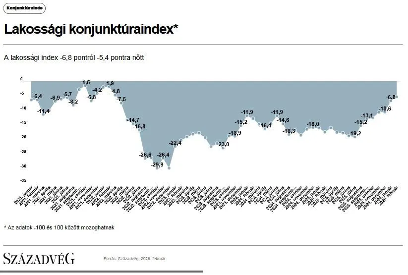A lakossági konjunktúrakutatásban 2026 februárjában jelentős pozitív irányú elmozdulást tapasztaltak a forint euróárfolyamának jövőbeni alakulását illetően.