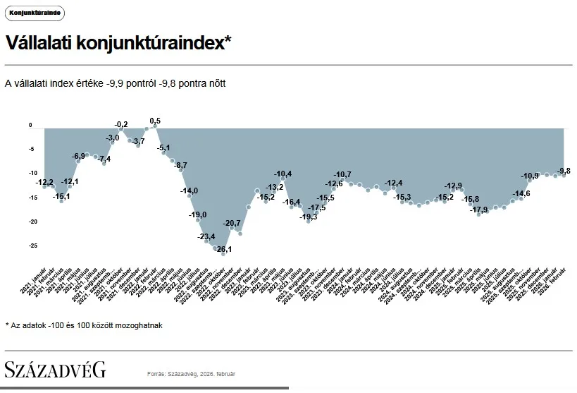 A legnagyobb pozitív változást 2026 februárjában a vállalatoknál a jövőbeni exportjuk alakulását illetően mértek.