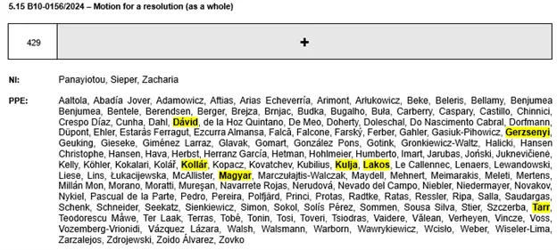 Bár ebben az esetben nem volt név szerinti szavazás, brüsszeli forrásainktól tudjuk, hogy látták felvillanni a lámpáját, és Lakos nem tagadta, hogy megszavazta a szöveget.