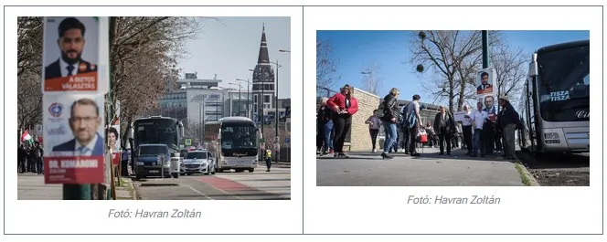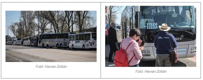 Az értesülések a két helyszínről igaznak bizonyultak, ott ugyanis a lap fotósa több tucat járművet fedezett fel, amelyekből folyamatosan szálltak ki a Tisza Párt tüntetésére érkező szimpatizánsok, majd pedig metróra ültetik őket, hogy azt a látszatot keltsék, önkéntesen érkeztek a menetre.