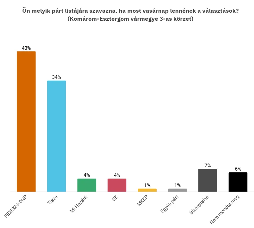 A Komárom-Esztergom vármegyei 3-as számú körzetben (Kormárom és környéke), ha most vasárnap lennének a választások, akkor a megkérdezettek: