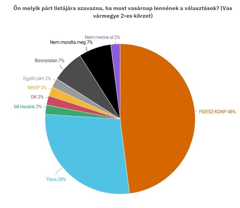 A Vas vármegyei 2-es számú körzetben (Sárvár és környéke), ha most vasárnap lennének a választások, akkor a megkérdezettek: