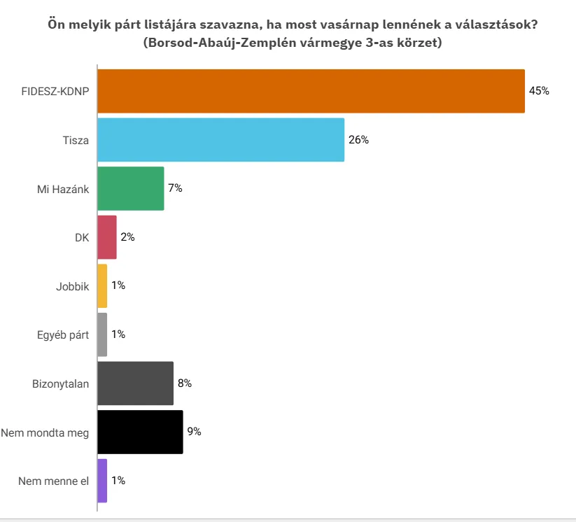 A Borsod vármegyei 3-as számú körzetben (Ózd és környéke), ha most vasárnap lennének a választások, akkor a megkérdezettek: