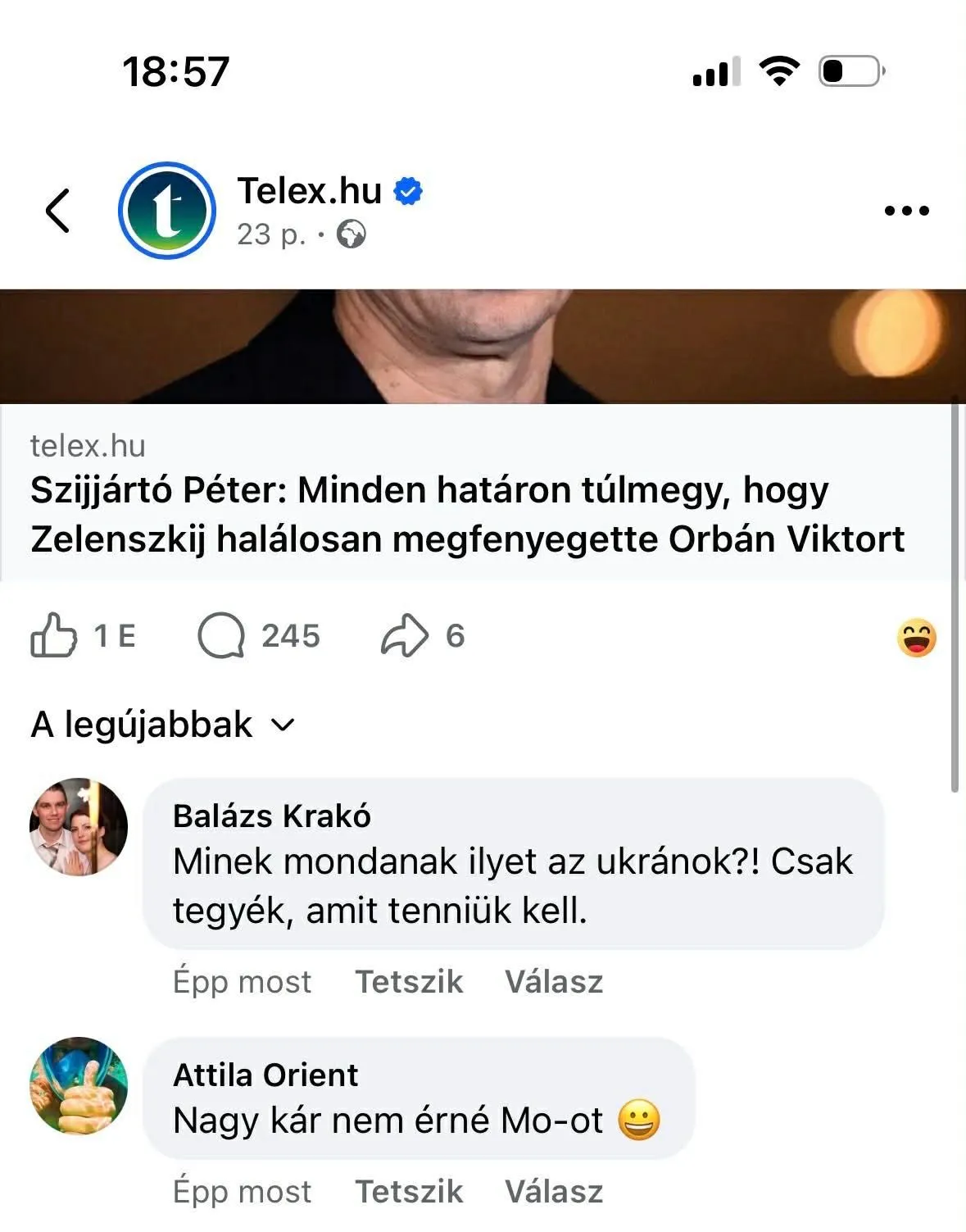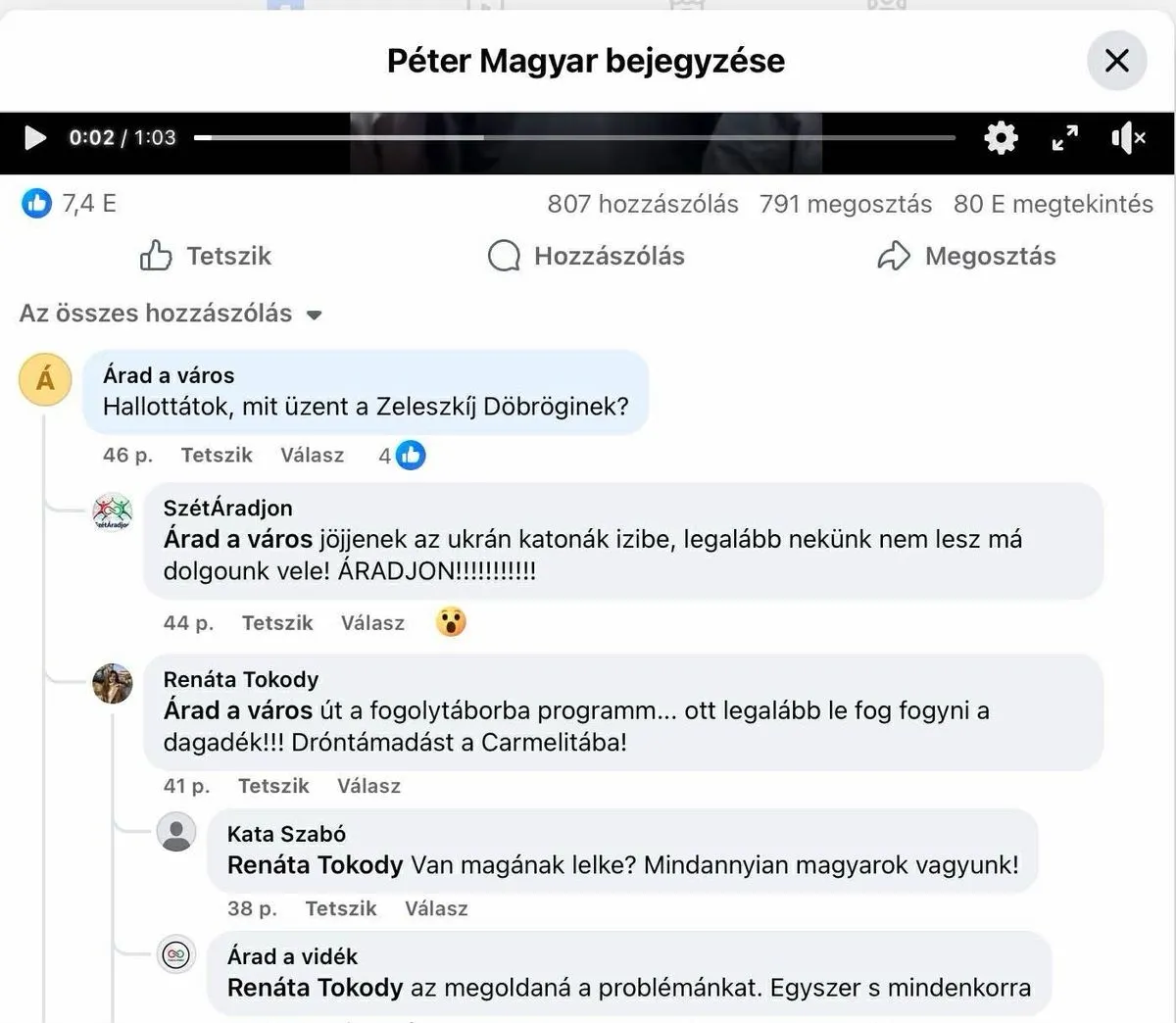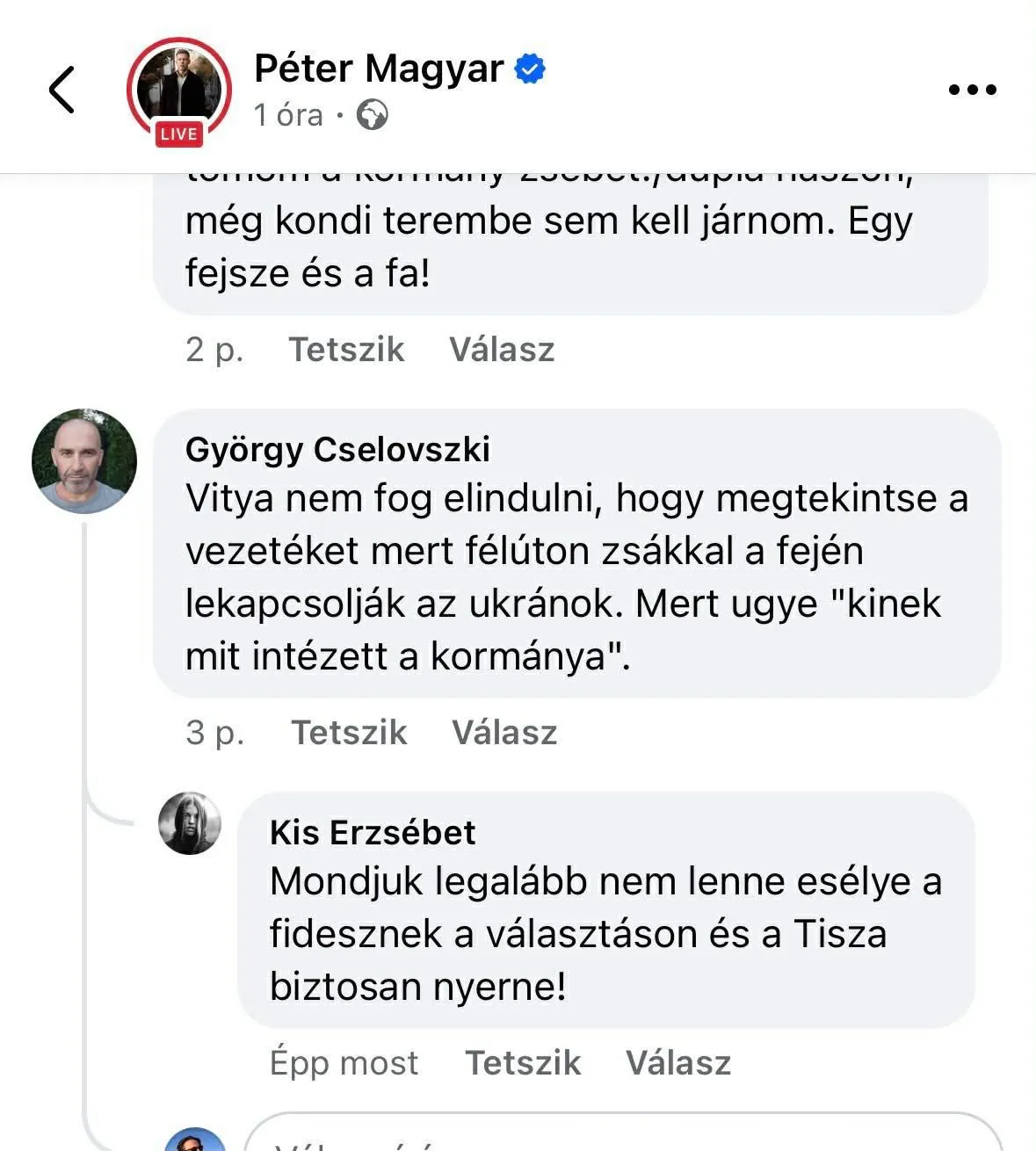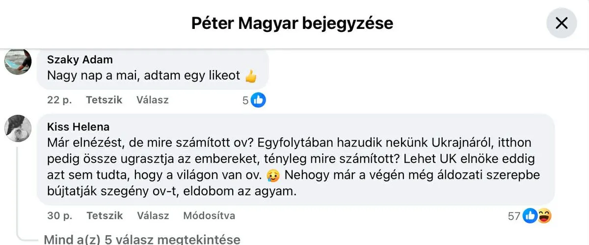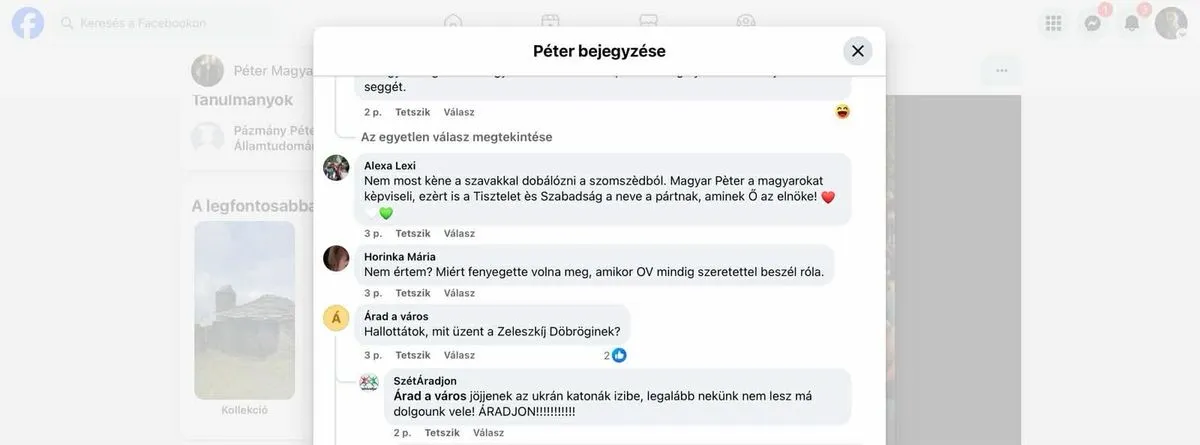 A tiszás kommentelők nagy örömmel fogadták, hogy az ukrán elnök életveszélyesen megfenyegette a magyar miniszterelnököt. Magyar Péter kapcsolódó bejegyzése, illetve a balliberális portálok vonatkozó híre alatt elképesztő kommentek jelentek meg, ezekből válogatott a Magyar Nemzet.