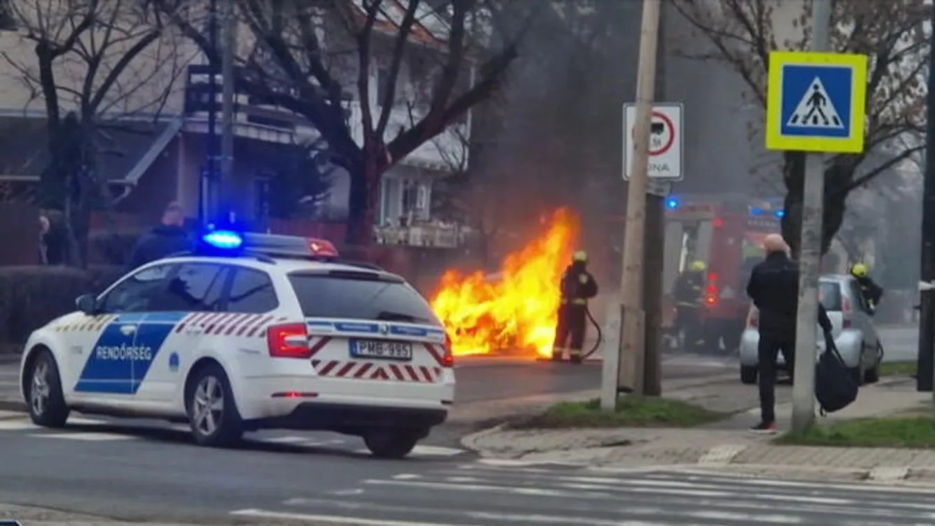 Lángolt az autó, sokkot kapott a sofőrje