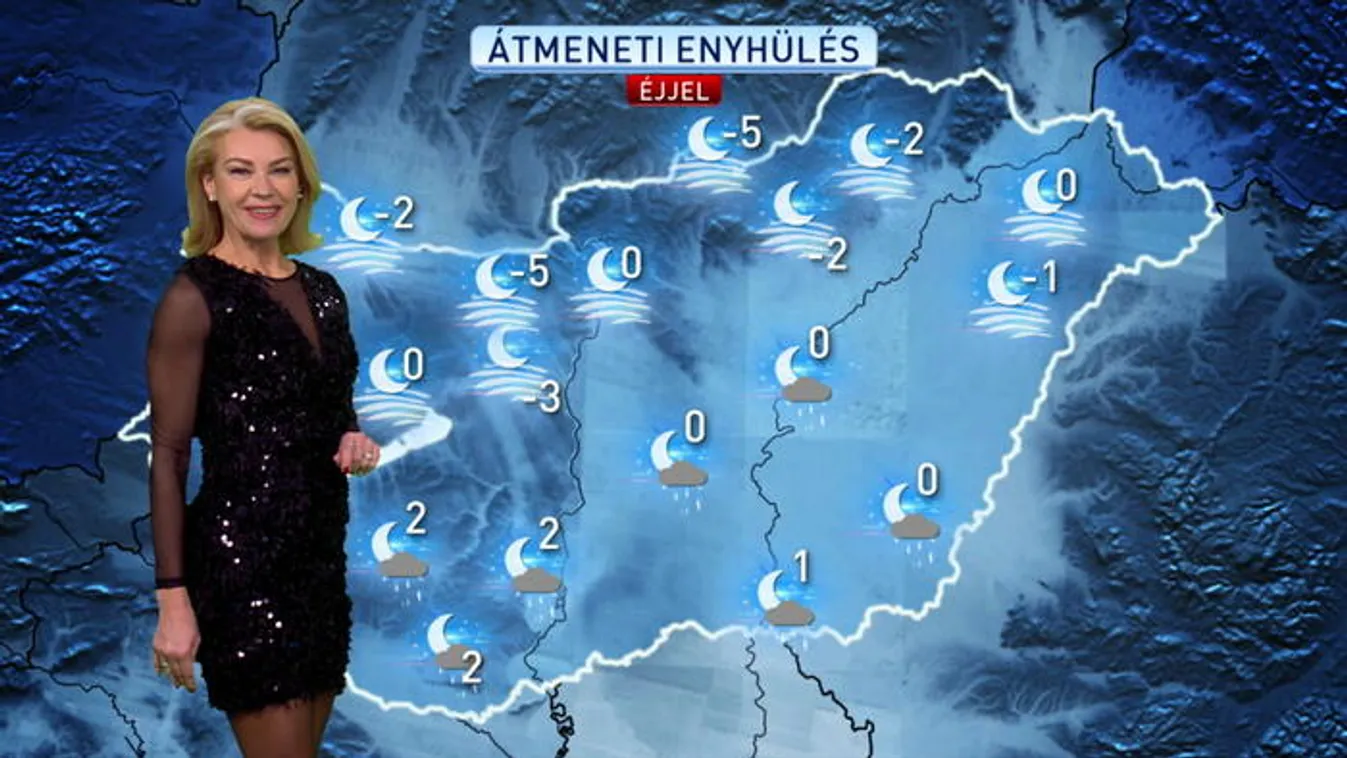 Gyenge eső, fagyok, zúzmarás köd éjjel
