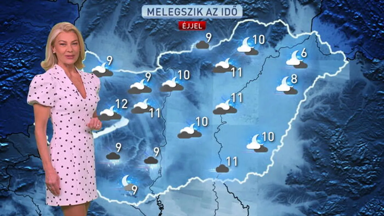Erősen felhős éjjeli égbolt kisebb záporokkal